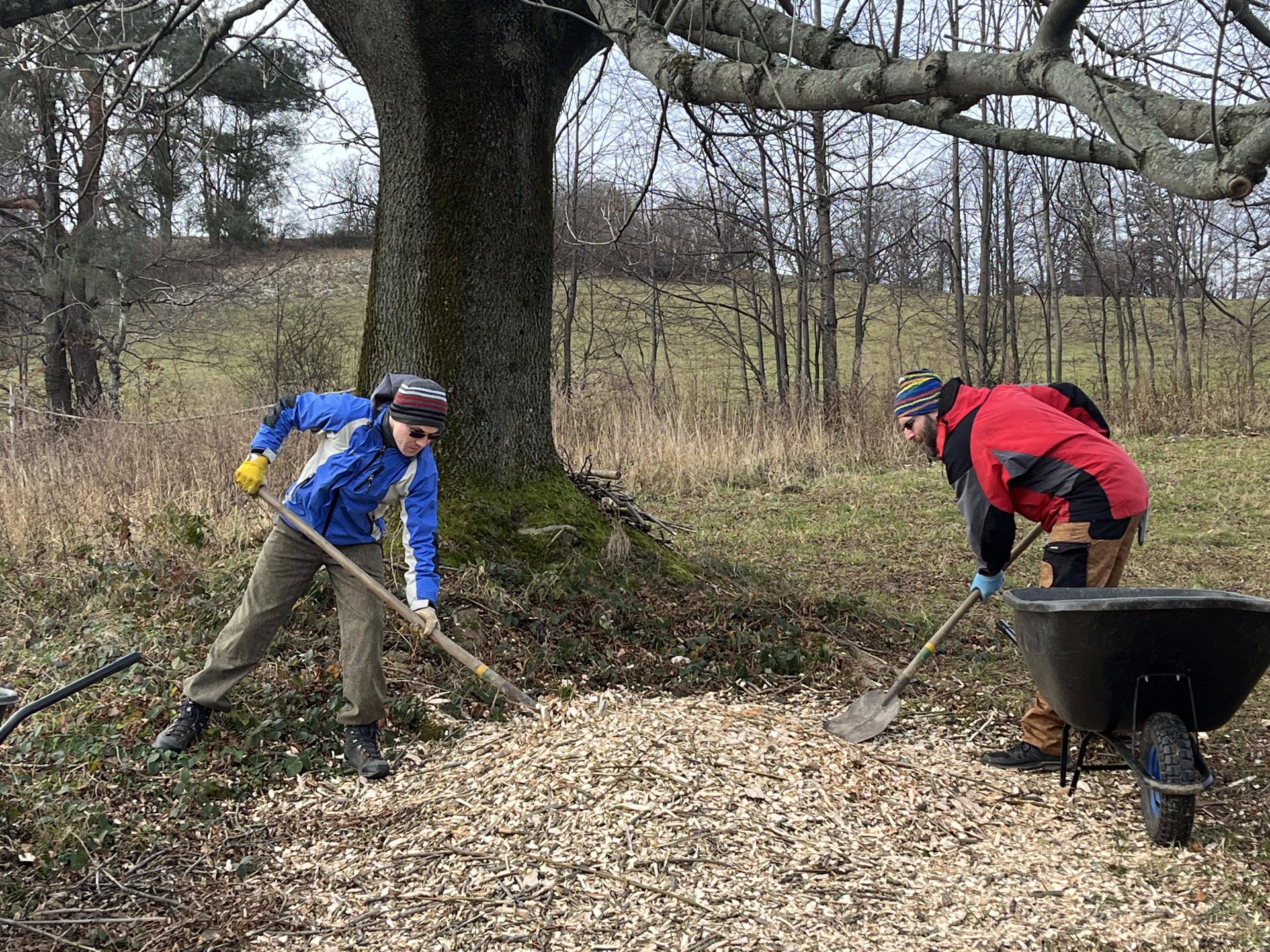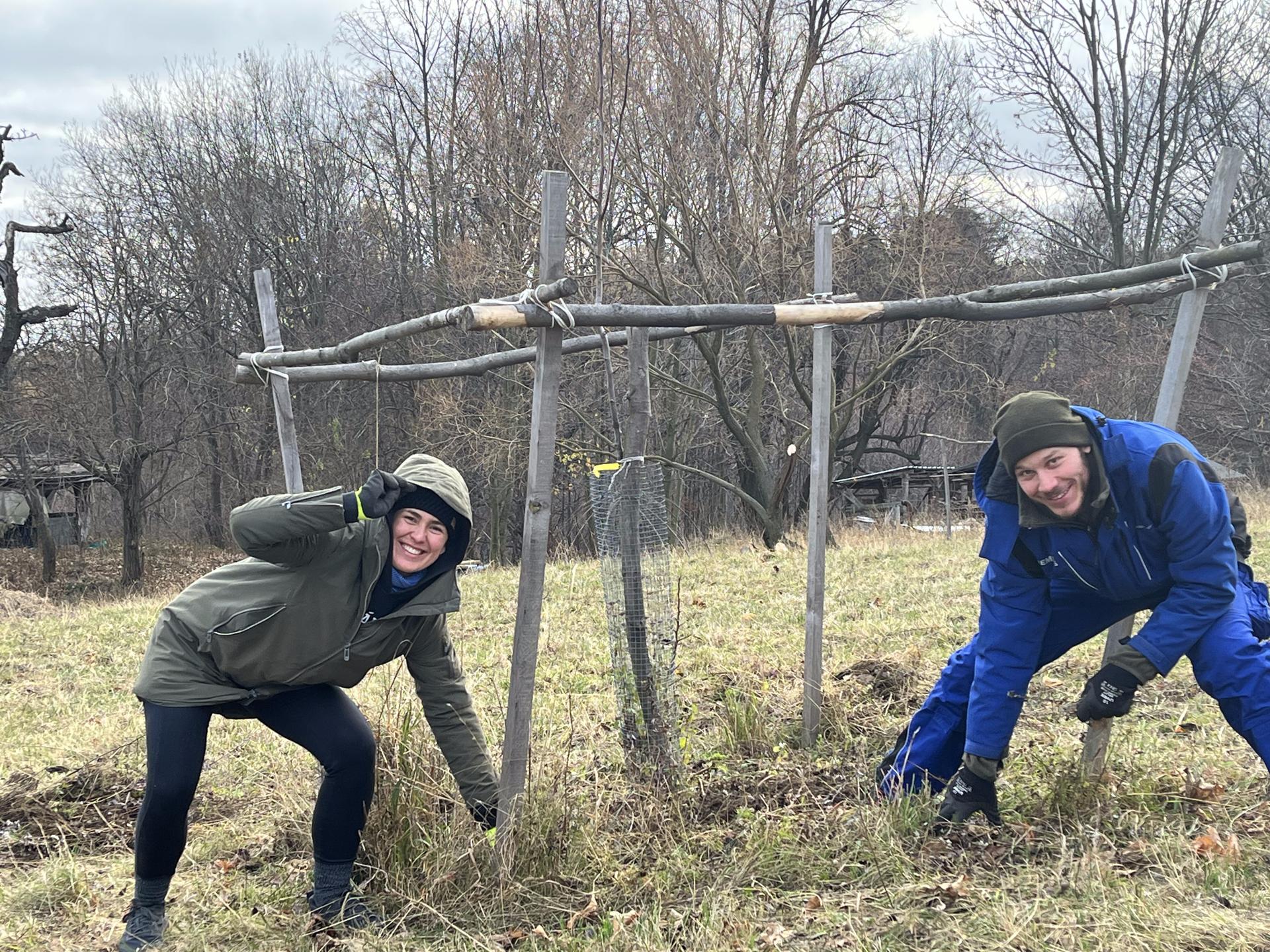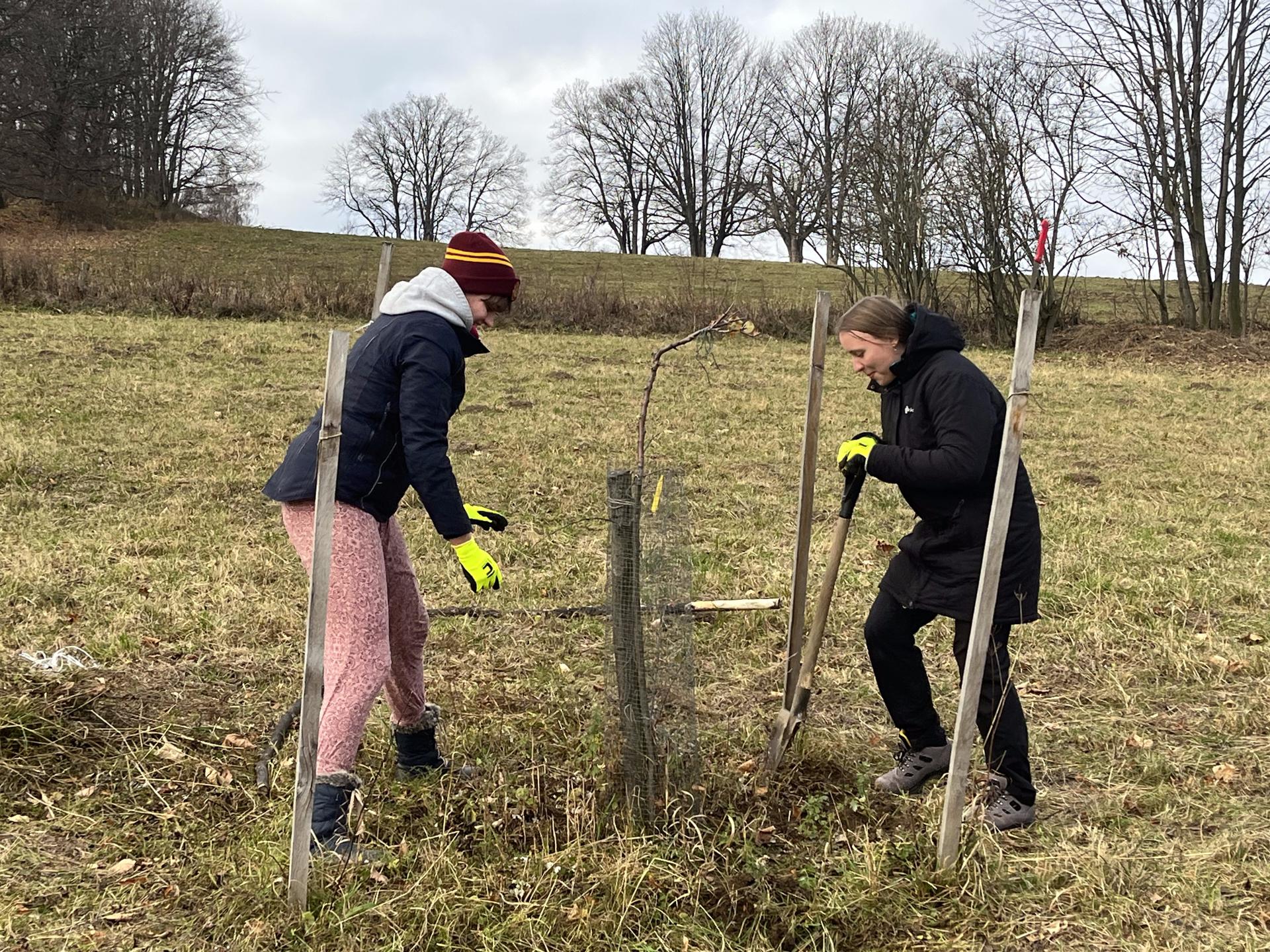 Dále budeme okopávat oplocenky kolem nově vysazených ovocných stromů.