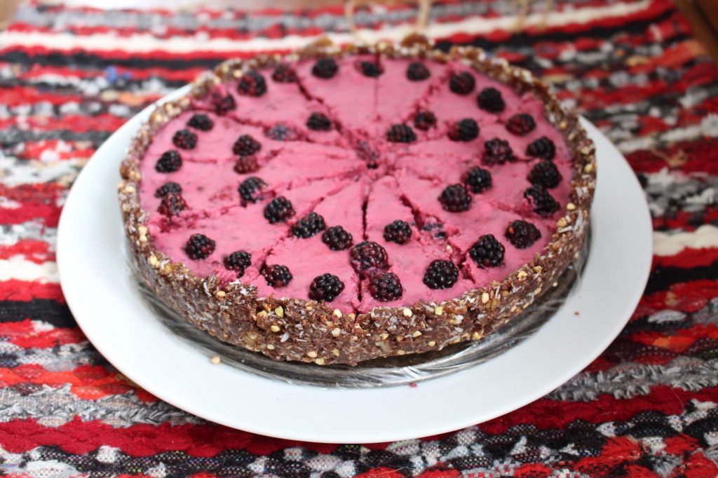 Z ostružin, které jsme během dne zvládli nesníst, jsme večer vytvořili úchvatný skvost – ostružinový nepečený dort s pohankou, kokosem, sušenkami a datlovou pastou. 🙂 Mňam!