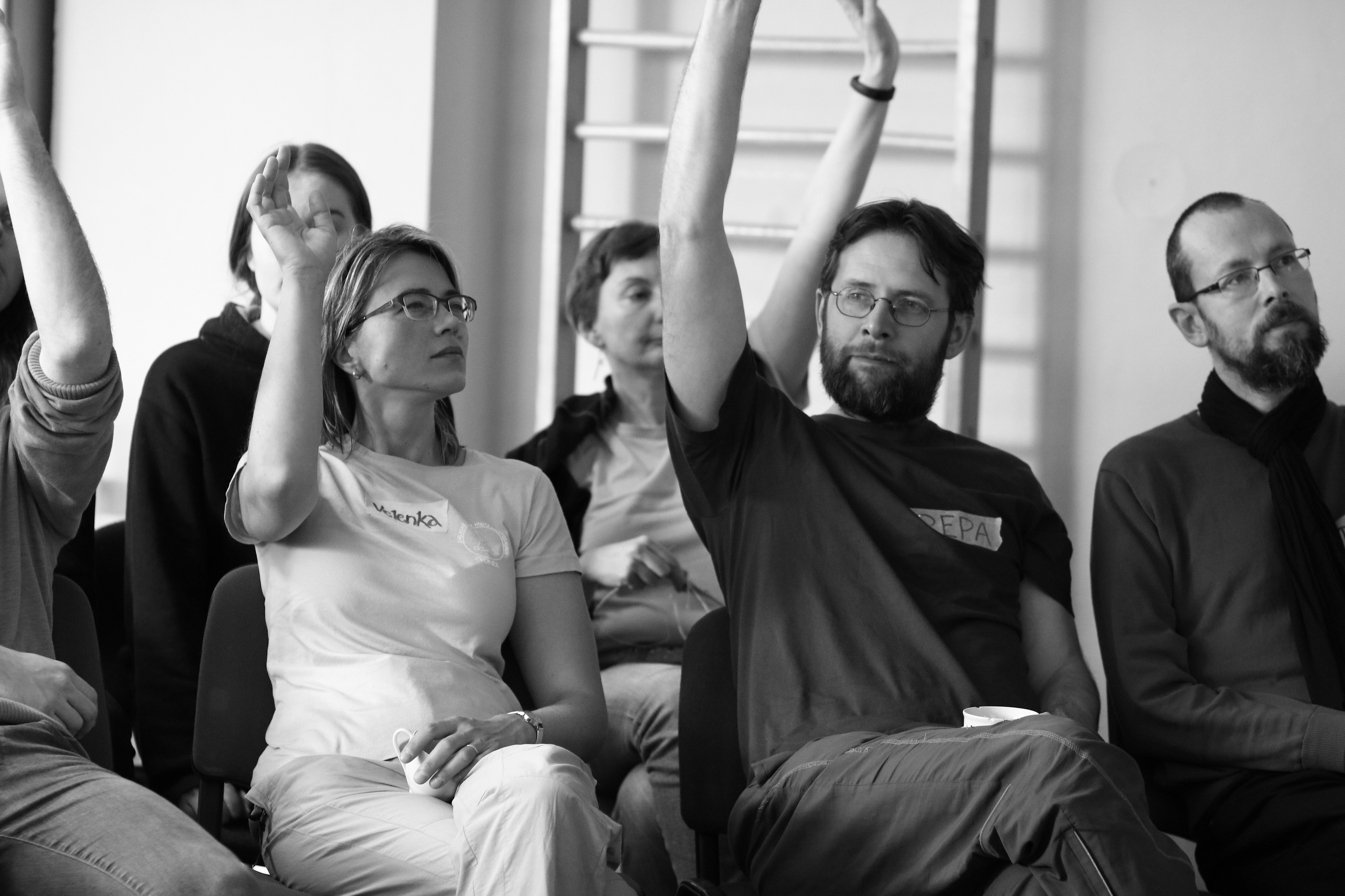 Po poledním klidu jsme se již tradičně vrhli na povinnosti, které se tak na valné hromadě dělají, například jsme se (velmi) hromadně vyfotili, hlasovali o všem možném (samozřejmě nadpoloviční většinou), pochválili se a volili novou radu Zvonku. Při této příležitosti jsme měli čest slyšet motivační projev zakladatele Zvonku Tondy Tomka, který nás velmi povzbudil. Do rady se s úspěchem probojovali: