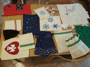 K čemu totiž spotřebovávat každoročně spousty balicího papíru, když můžete Ježíška ponouknout k tomu, aby používal opakovaně krásně vánočně nazdobené plátěné pytlíky a tašky? 😉